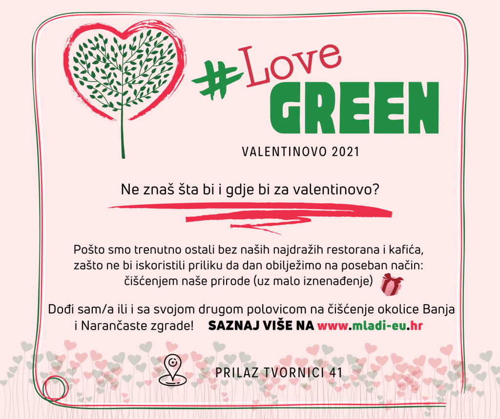Udruga mladih “Mladi u EU” poziva sve ljude dobre volje i one kojima je zaštita okoliša važna, da za Valentinovo volonterski sudjeluju u akciji čišćenja prirode.