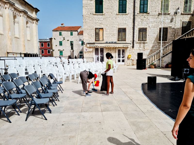 Njihov zadatak bio je pomoći u provedbi raznih festivalskih aktivnosti tijekom pandemijiske godine. Tako su volonteri imali priliku u večernjim satima pružeti informacije građanima na festivalskoj recepciji, pripremati pozornice za probe i uređivati galerijiske prostore nakon završetka dječjeg radioničkog programa. No volonteri nisu samo provodili svoje vrijeme volontirajući na festivalu već je dio slobodnog vremena bio rezerviran za međusobno druženje i upoznavanje sa znamenitostima grada domaćina. Tako su volonteri imali organizirane dvije interkulturalne večeri gdje su predstavili svoje zemlje i još veiše se upoznali, posjetili su Brešanovu spomen-sobu te tvrđave Barone, Sv. Mihovil i Sv. Nikola.